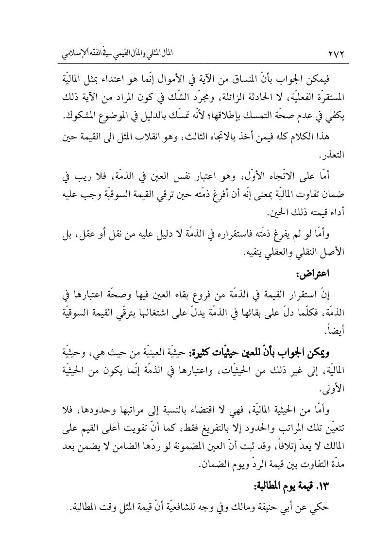 المال المثلي والمال القيمي في الفقه الإسلامي