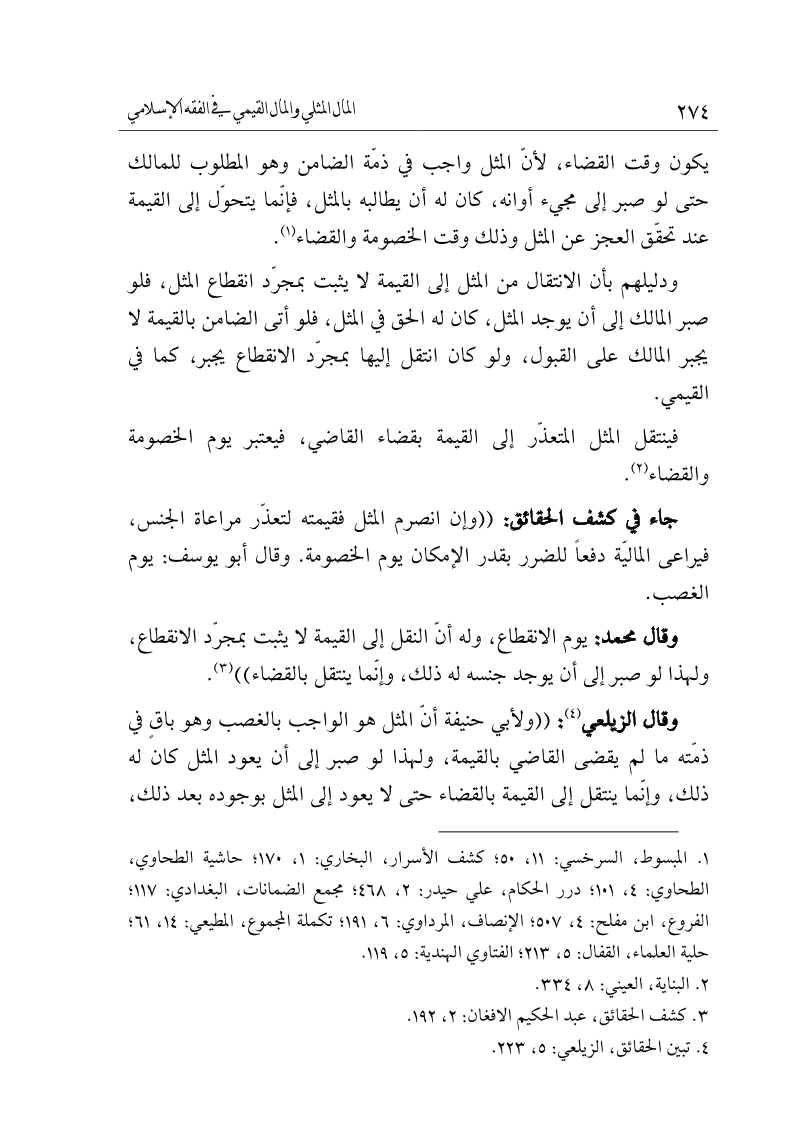 المال المثلي والمال القيمي في الفقه الإسلامي