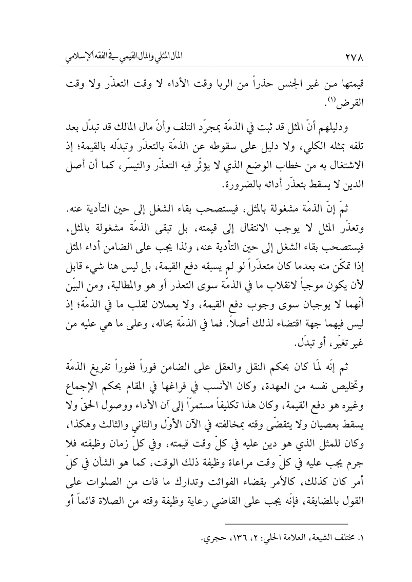 المال المثلي والمال القيمي في الفقه الإسلامي