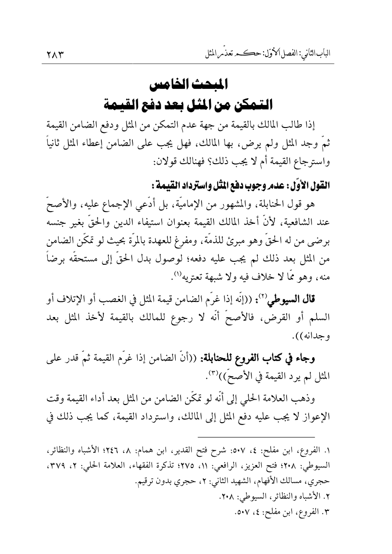 المال المثلي والمال القيمي في الفقه الإسلامي