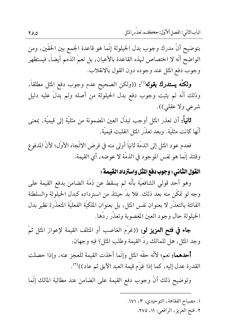 المال المثلي والمال القيمي في الفقه الإسلامي