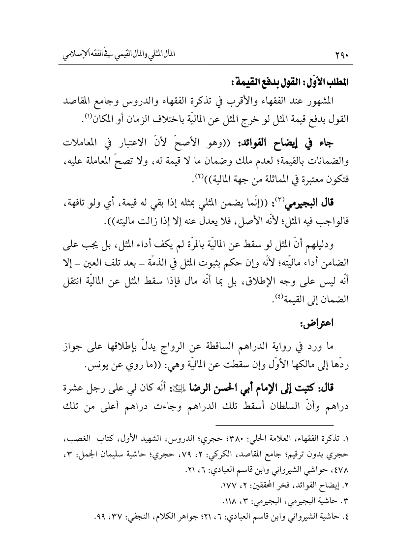 المال المثلي والمال القيمي في الفقه الإسلامي
