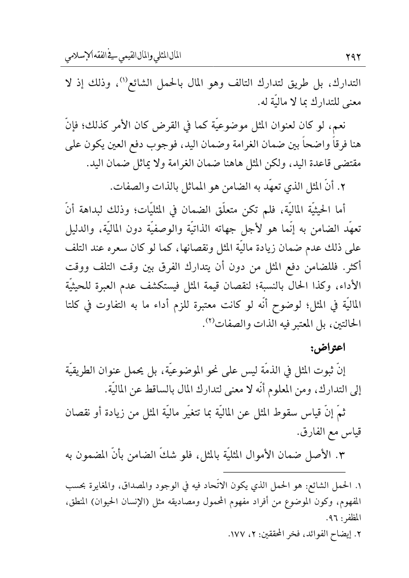 المال المثلي والمال القيمي في الفقه الإسلامي