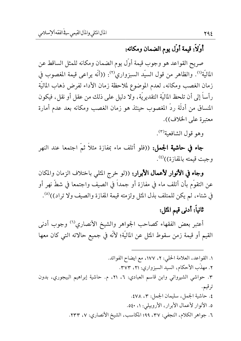 المال المثلي والمال القيمي في الفقه الإسلامي