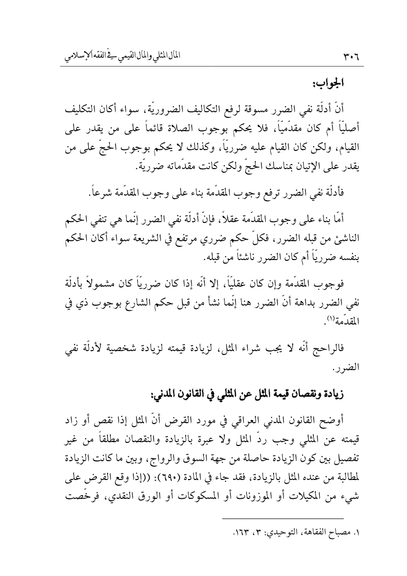 المال المثلي والمال القيمي في الفقه الإسلامي