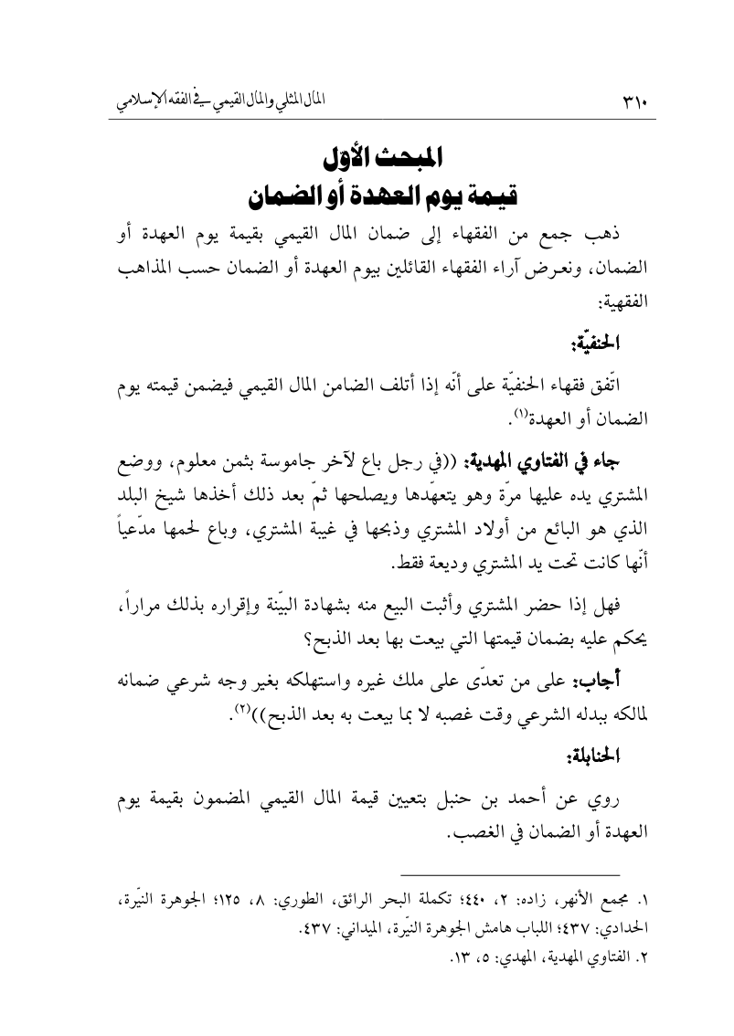 المال المثلي والمال القيمي في الفقه الإسلامي