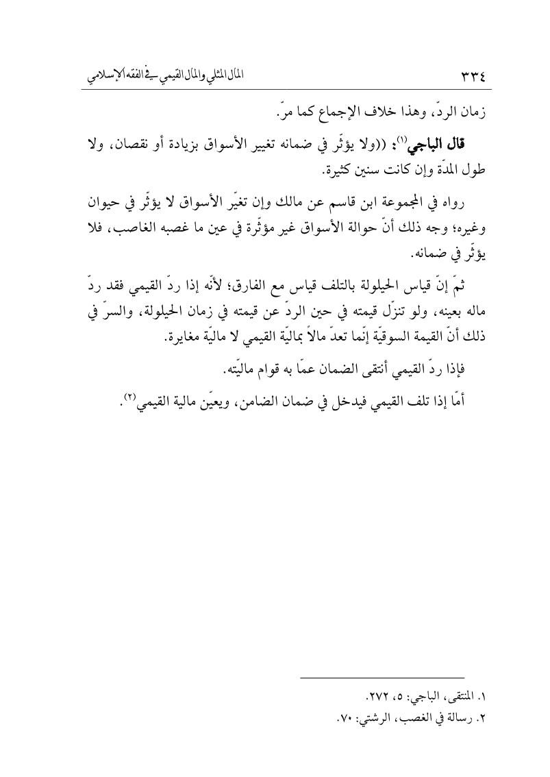 المال المثلي والمال القيمي في الفقه الإسلامي