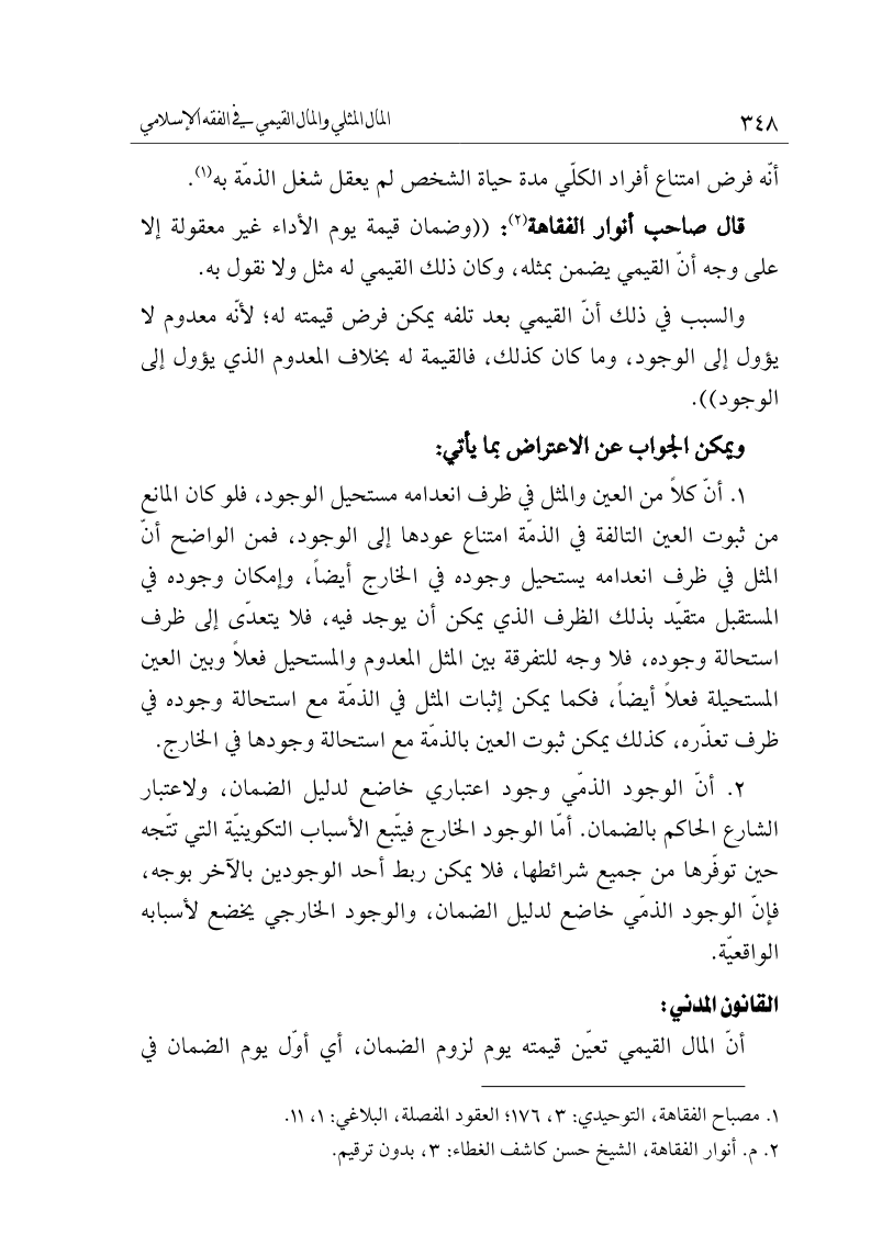 المال المثلي والمال القيمي في الفقه الإسلامي