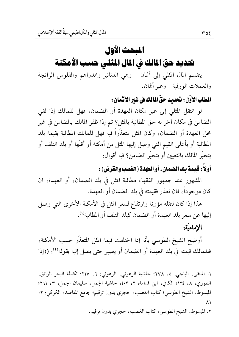 المال المثلي والمال القيمي في الفقه الإسلامي
