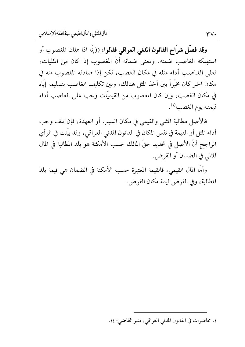 المال المثلي والمال القيمي في الفقه الإسلامي