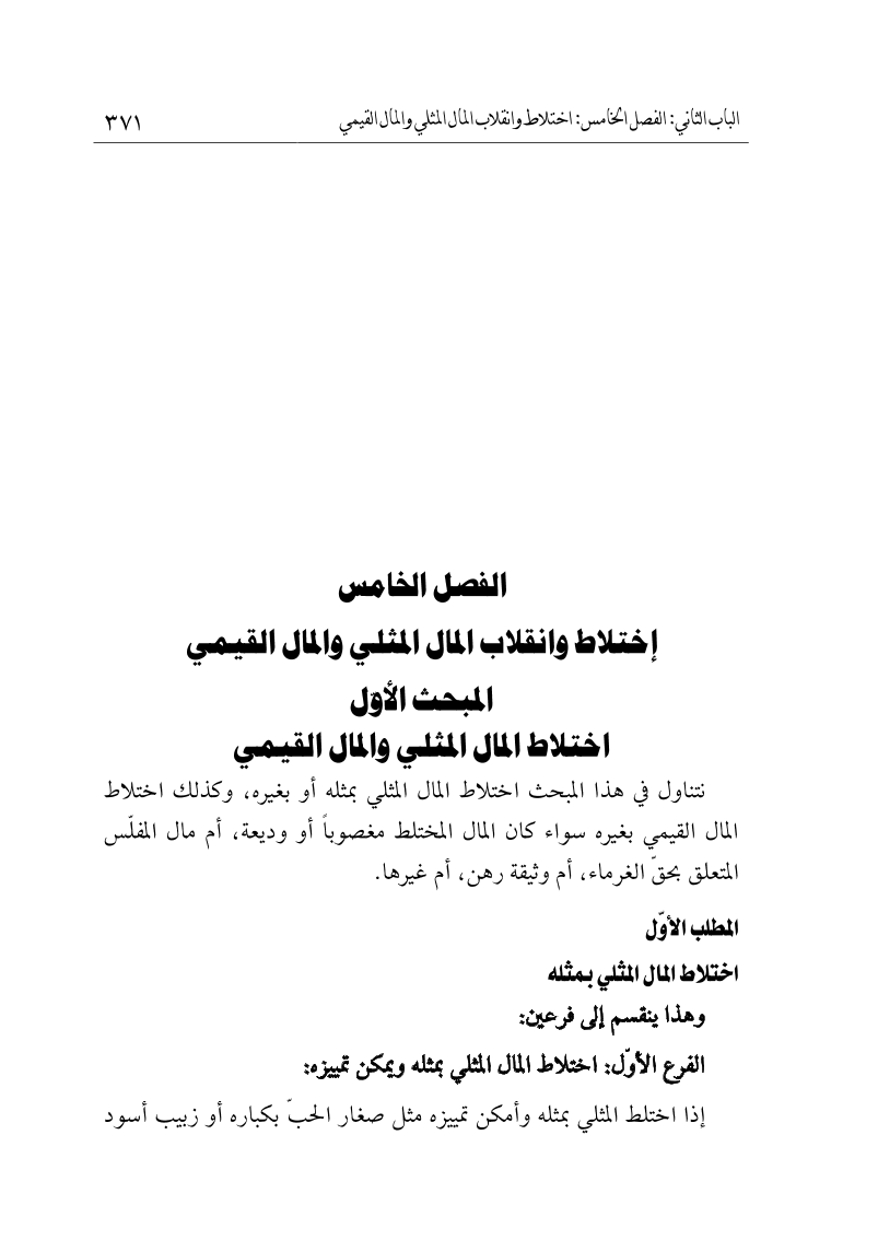 المال المثلي والمال القيمي في الفقه الإسلامي