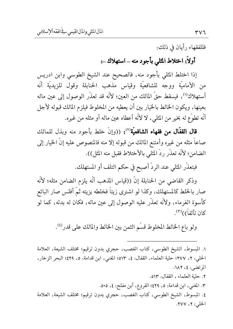 المال المثلي والمال القيمي في الفقه الإسلامي