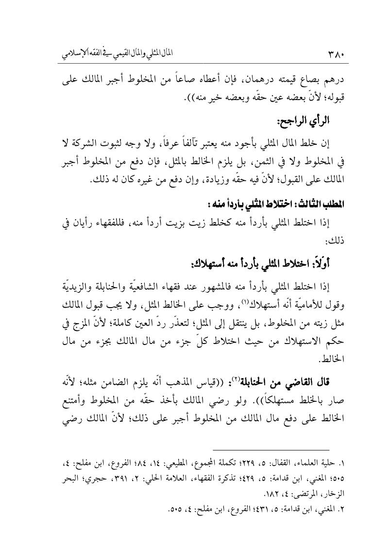المال المثلي والمال القيمي في الفقه الإسلامي