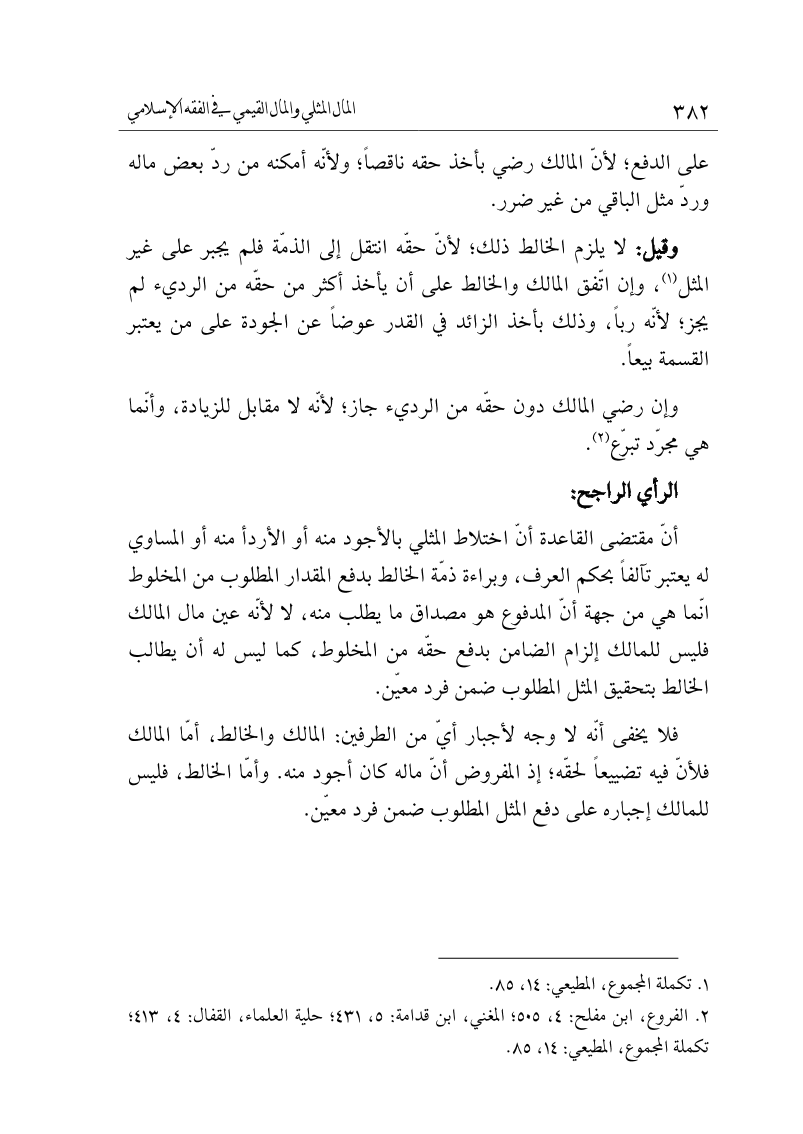 المال المثلي والمال القيمي في الفقه الإسلامي