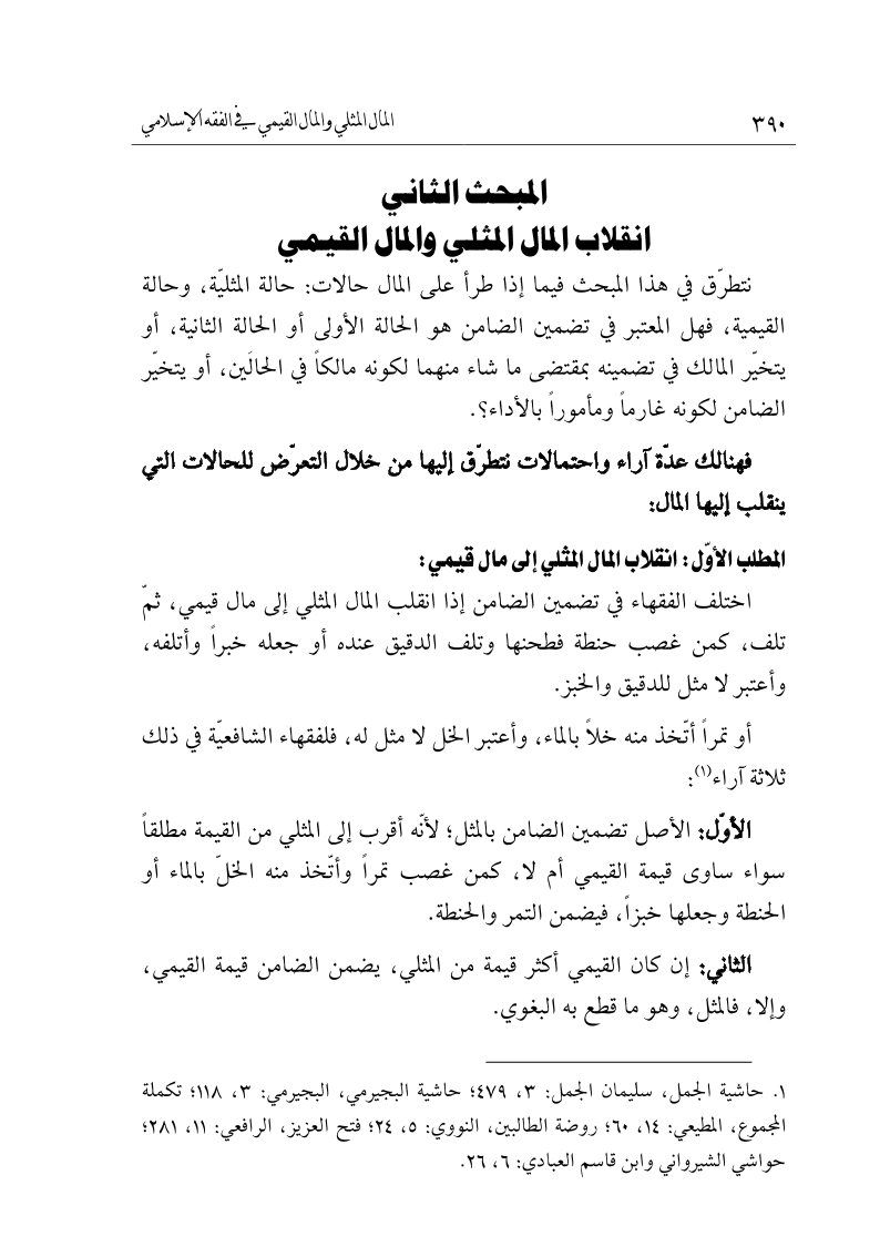 المال المثلي والمال القيمي في الفقه الإسلامي