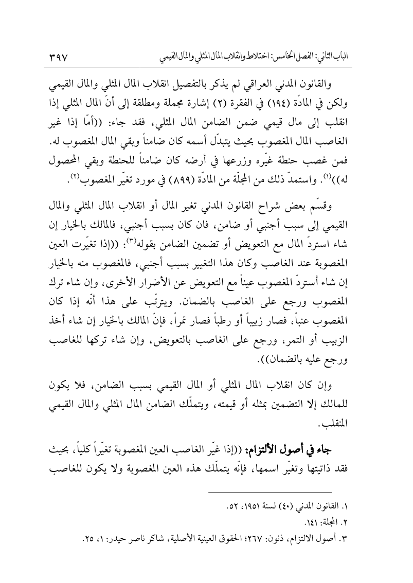 المال المثلي والمال القيمي في الفقه الإسلامي