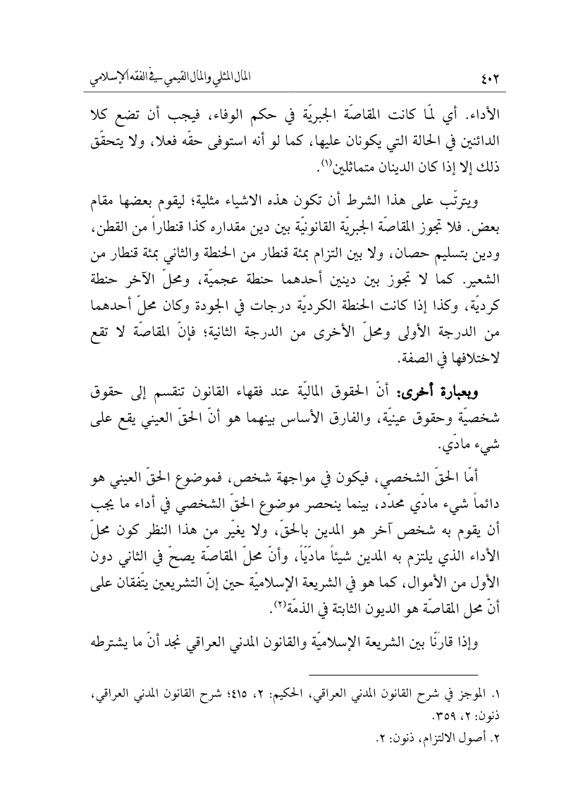 المال المثلي والمال القيمي في الفقه الإسلامي