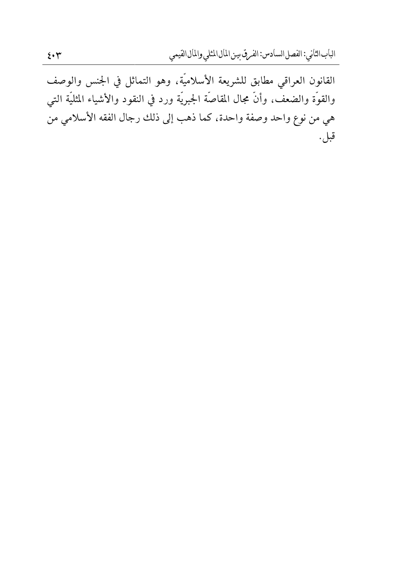 المال المثلي والمال القيمي في الفقه الإسلامي