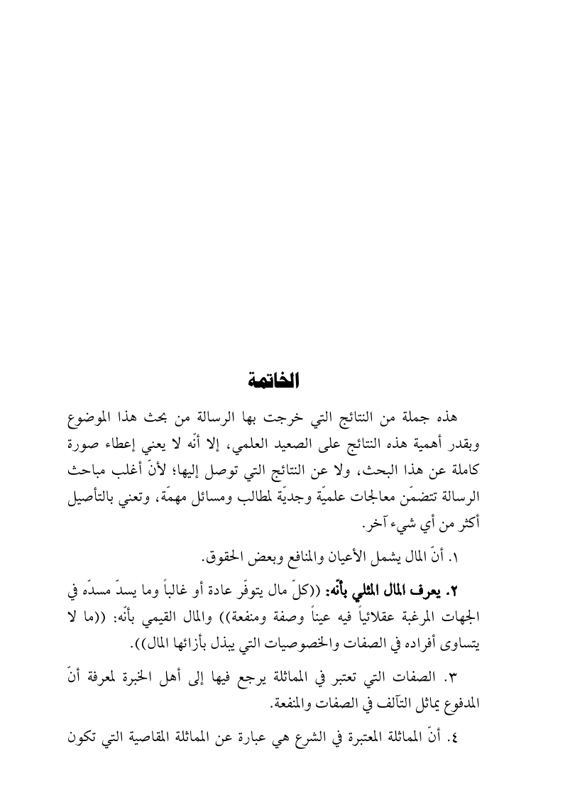 المال المثلي والمال القيمي في الفقه الإسلامي