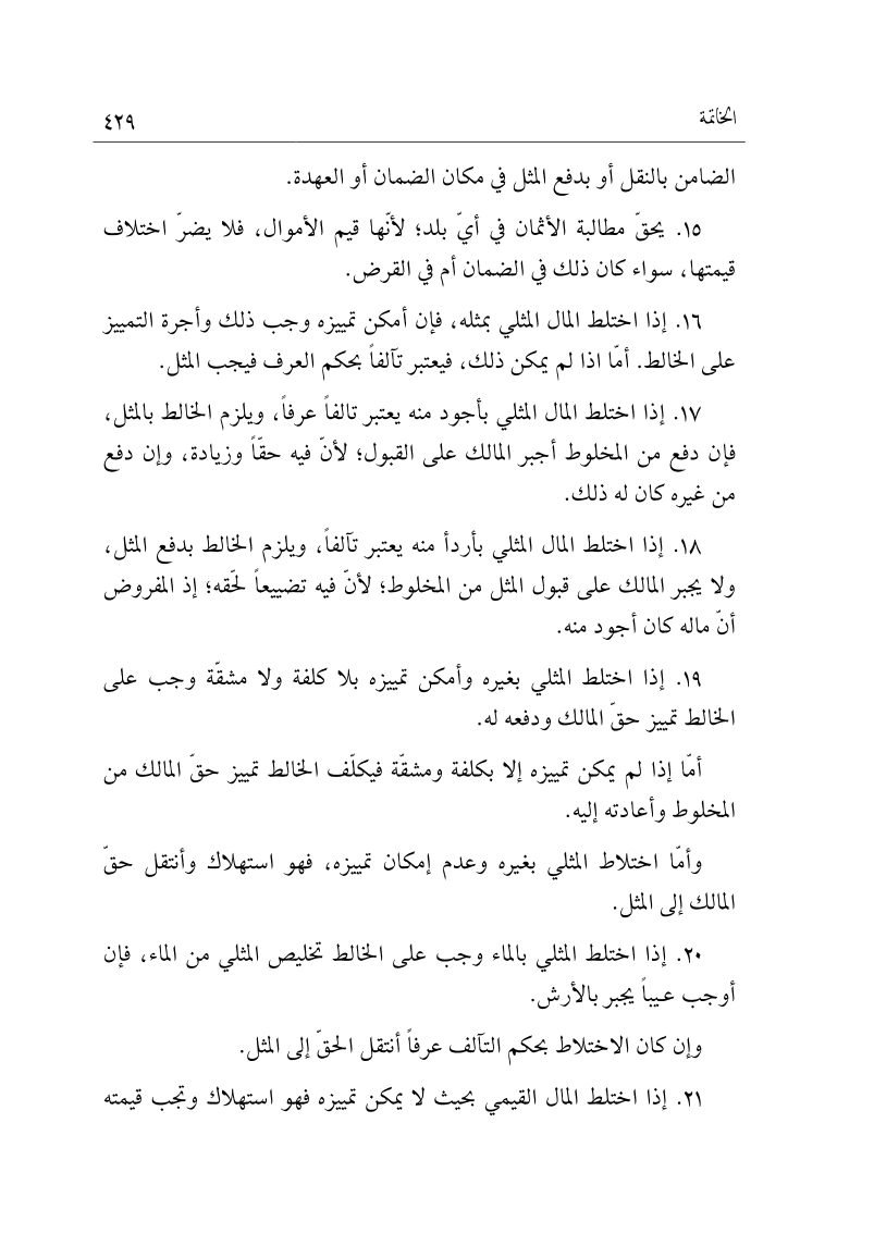 المال المثلي والمال القيمي في الفقه الإسلامي
