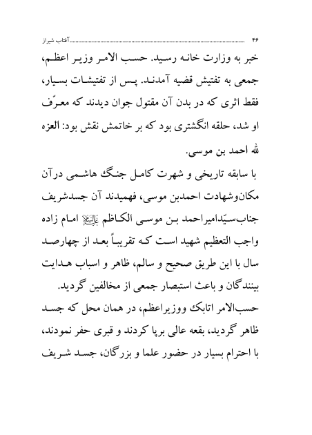 آفتاب شيراز؛ زندگينامه احمد بن موسي (ع)