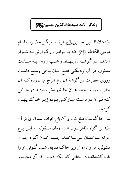 آفتاب شيراز؛ زندگينامه احمد بن موسي (ع)
