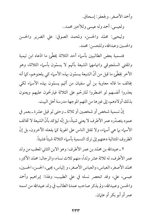 تسمية أولاد الأئمة بأسماء الخلفاء