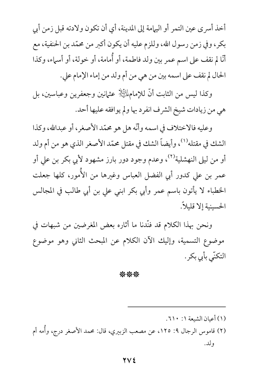 تسمية أولاد الأئمة بأسماء الخلفاء