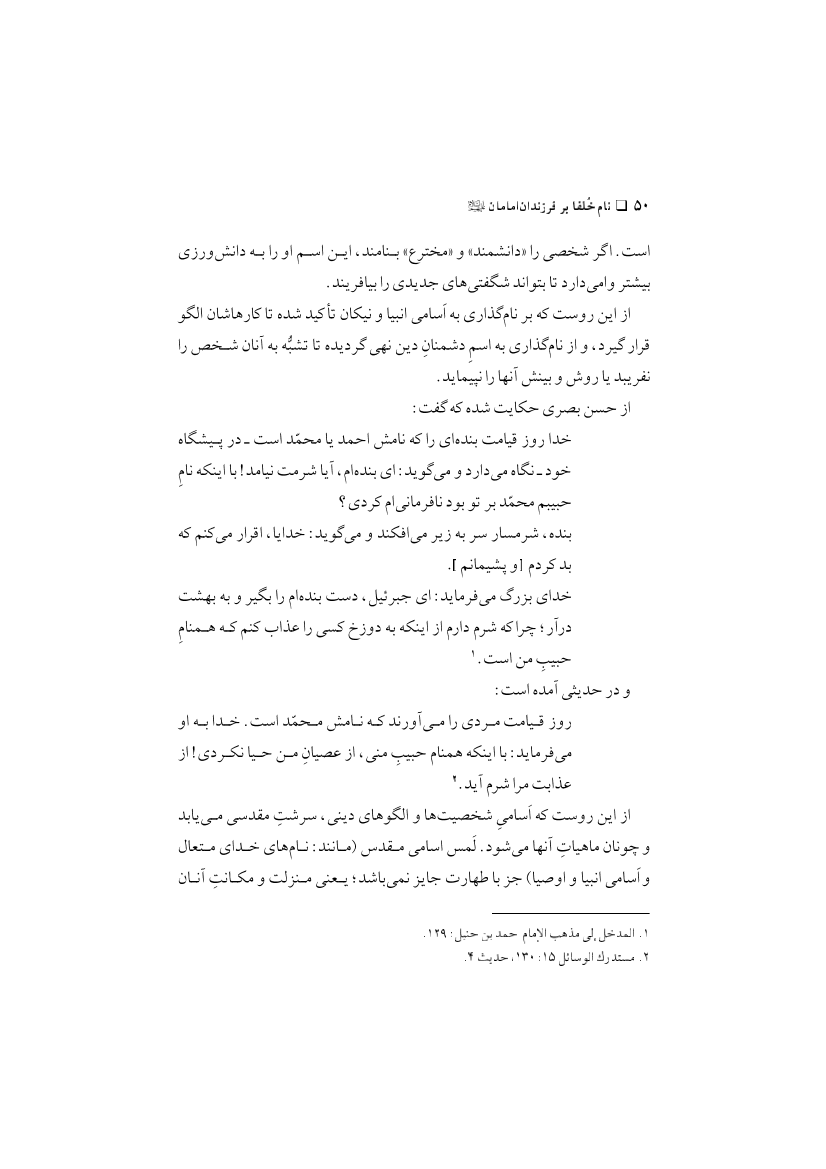 نام خلفا بر فرزندان امامان
