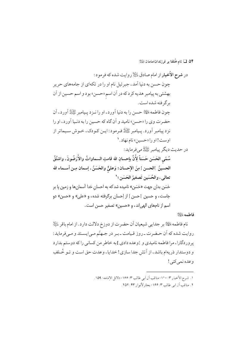 نام خلفا بر فرزندان امامان