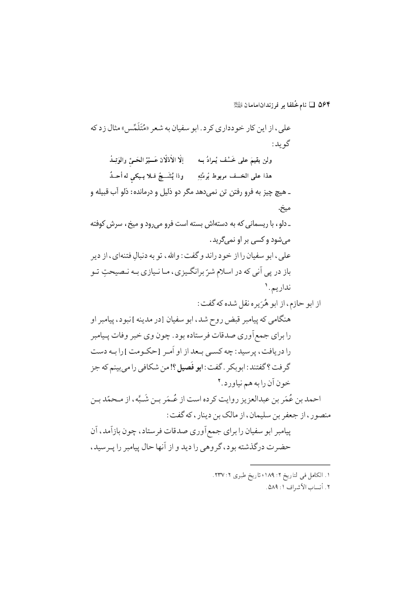 نام خلفا بر فرزندان امامان