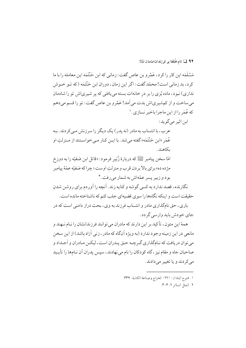 نام خلفا بر فرزندان امامان