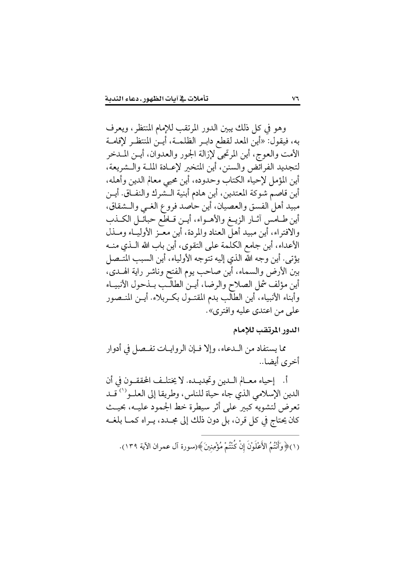 تأملات في آيات الظهور (دعاء الندبة)