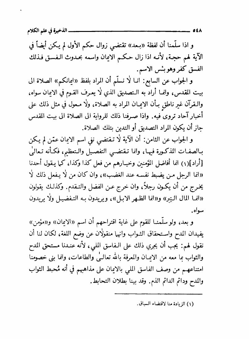 الذخيرة في علم الکلام