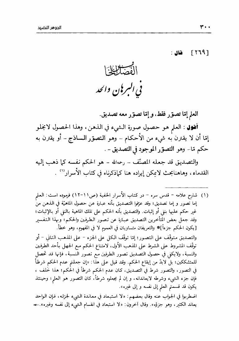 الجوهر الضید فی شرح منطق التجرید