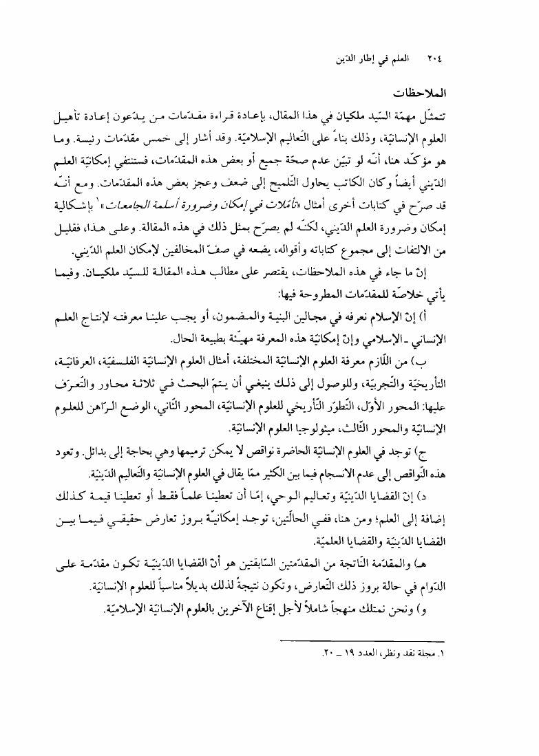 العلم في اطارالدین