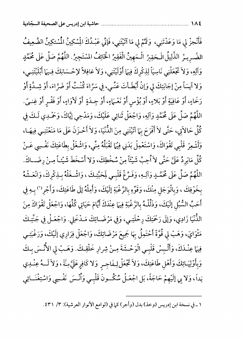 حاشيه ابن ادريس علي الصحيفه السجاديه