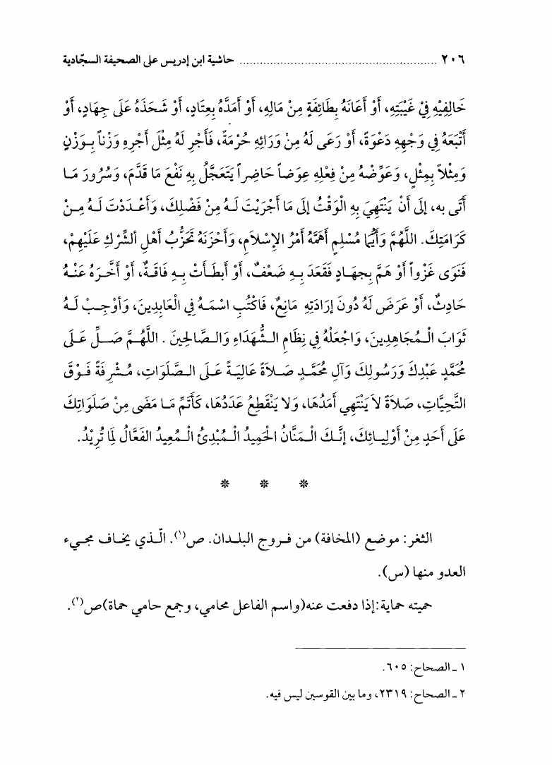 حاشيه ابن ادريس علي الصحيفه السجاديه