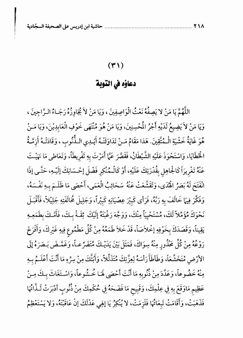 حاشيه ابن ادريس علي الصحيفه السجاديه