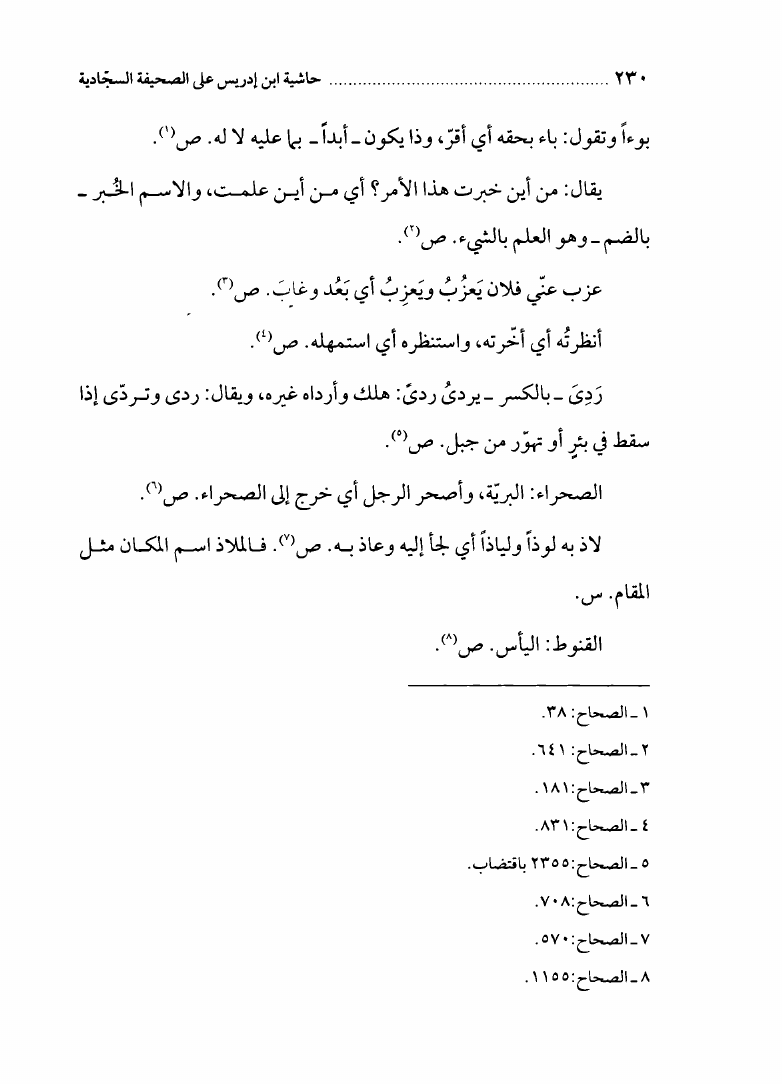 حاشيه ابن ادريس علي الصحيفه السجاديه
