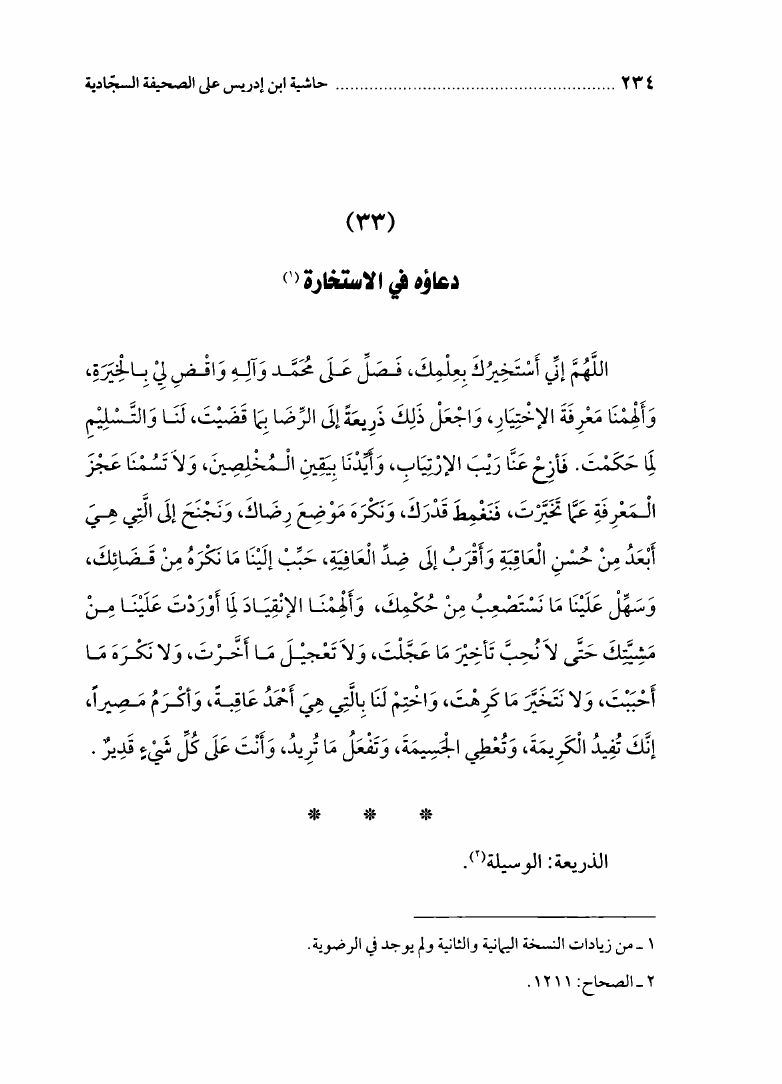 حاشيه ابن ادريس علي الصحيفه السجاديه
