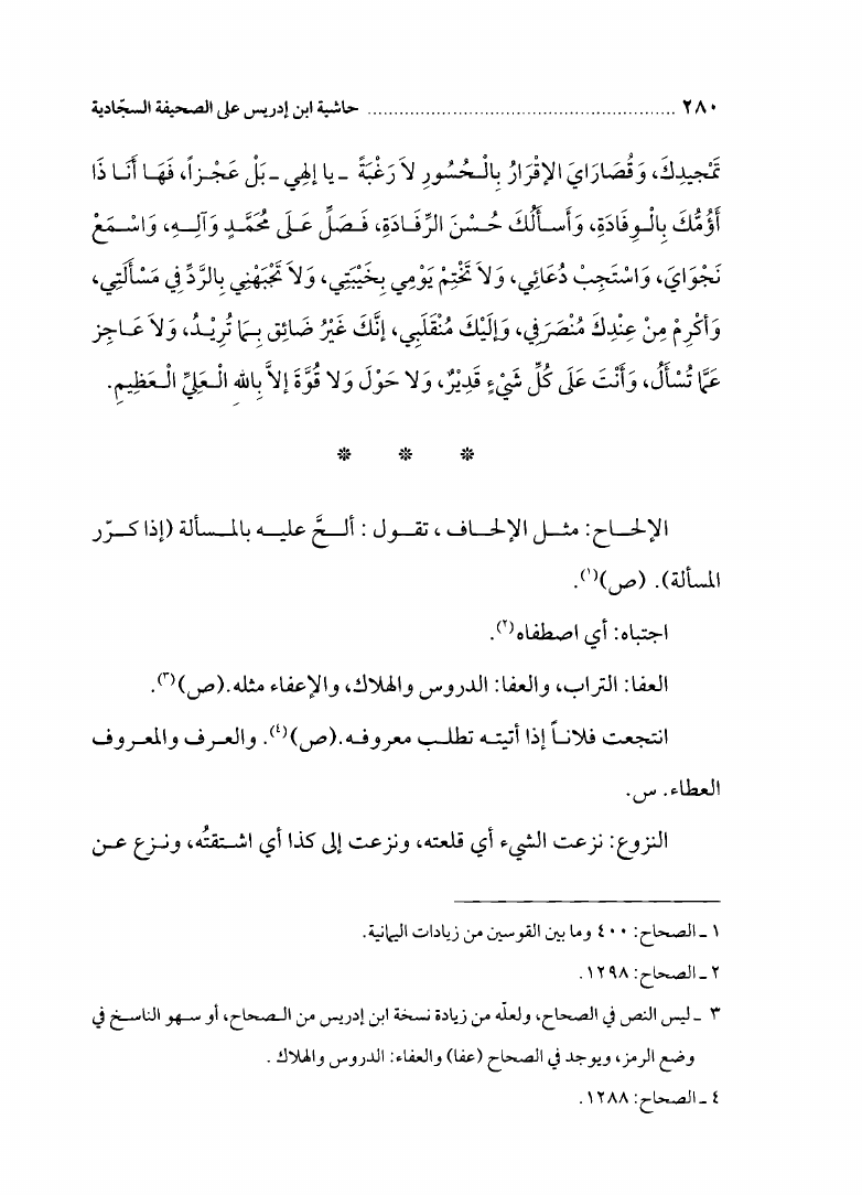 حاشيه ابن ادريس علي الصحيفه السجاديه