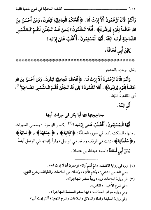 كشف المحجة في شرح خطبة اللّمة، شرح خطبة فاطمة الزهراء ع