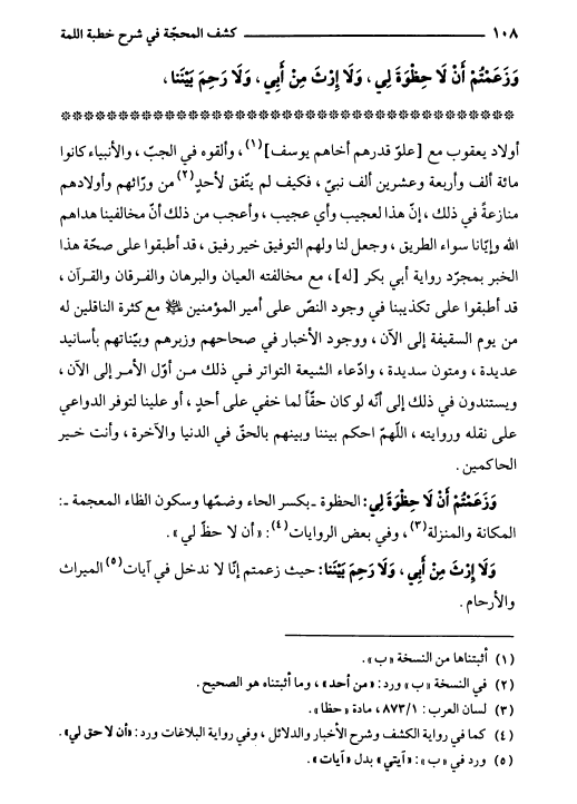 كشف المحجة في شرح خطبة اللّمة، شرح خطبة فاطمة الزهراء ع