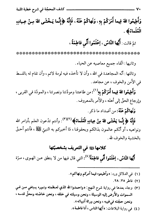كشف المحجة في شرح خطبة اللّمة، شرح خطبة فاطمة الزهراء ع