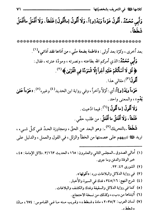 كشف المحجة في شرح خطبة اللّمة، شرح خطبة فاطمة الزهراء ع
