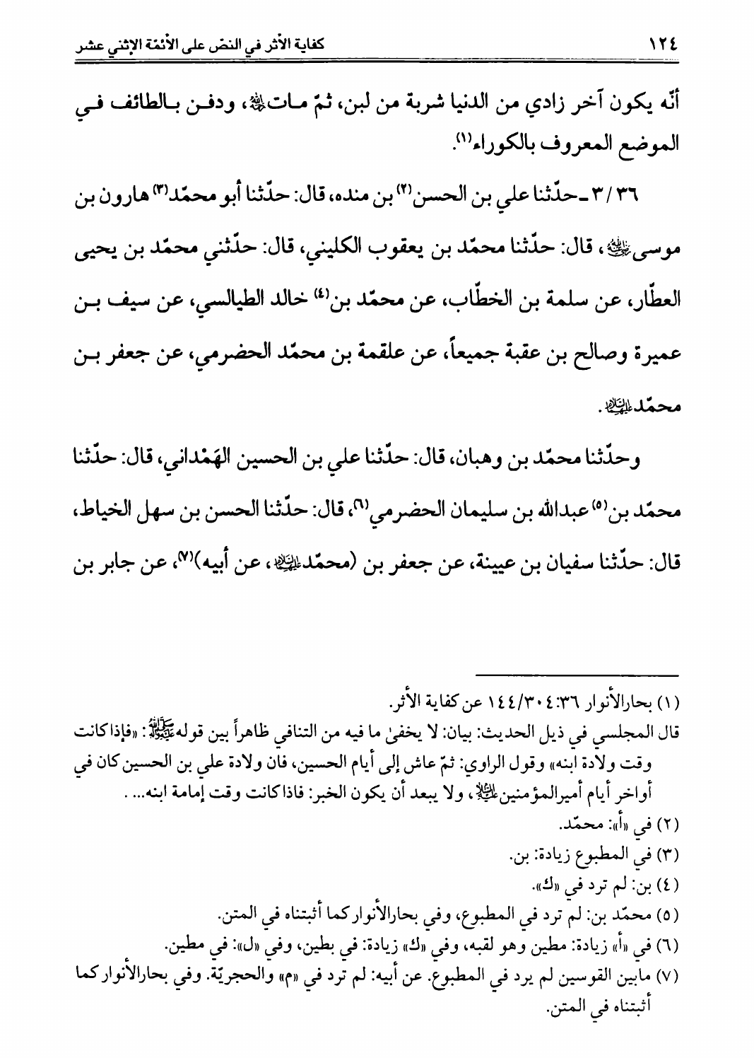 كفاية الأثر، في النصوص على الأئمة الإثني عشر
