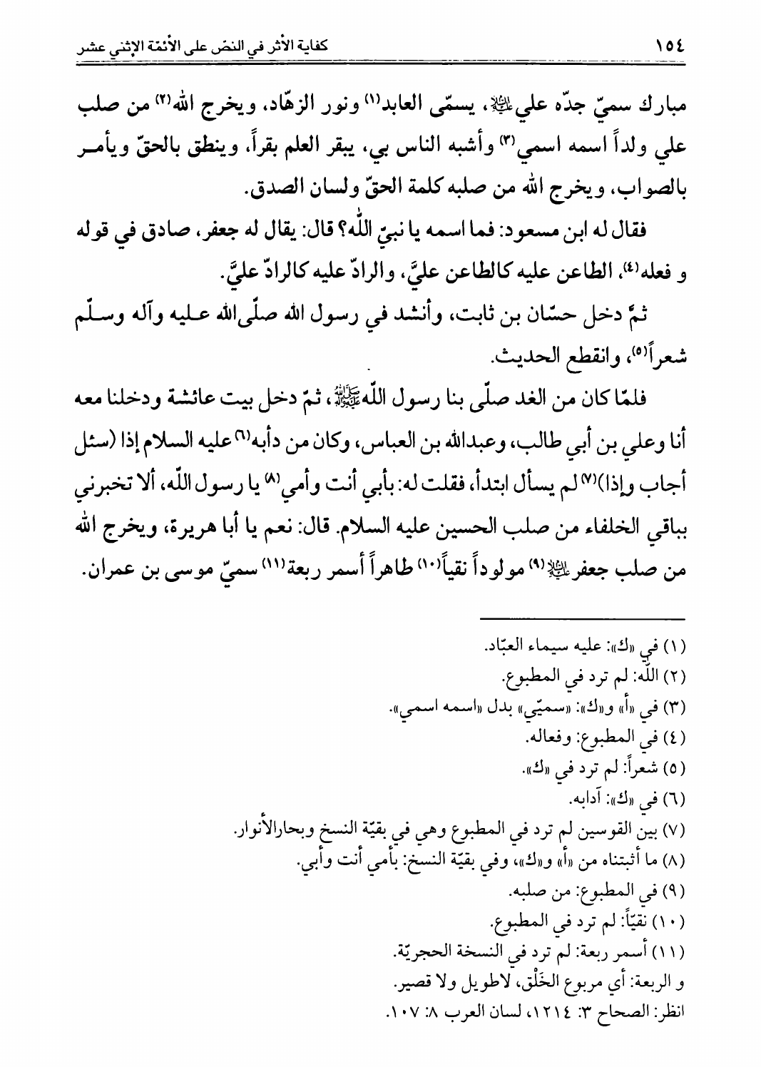 كفاية الأثر، في النصوص على الأئمة الإثني عشر