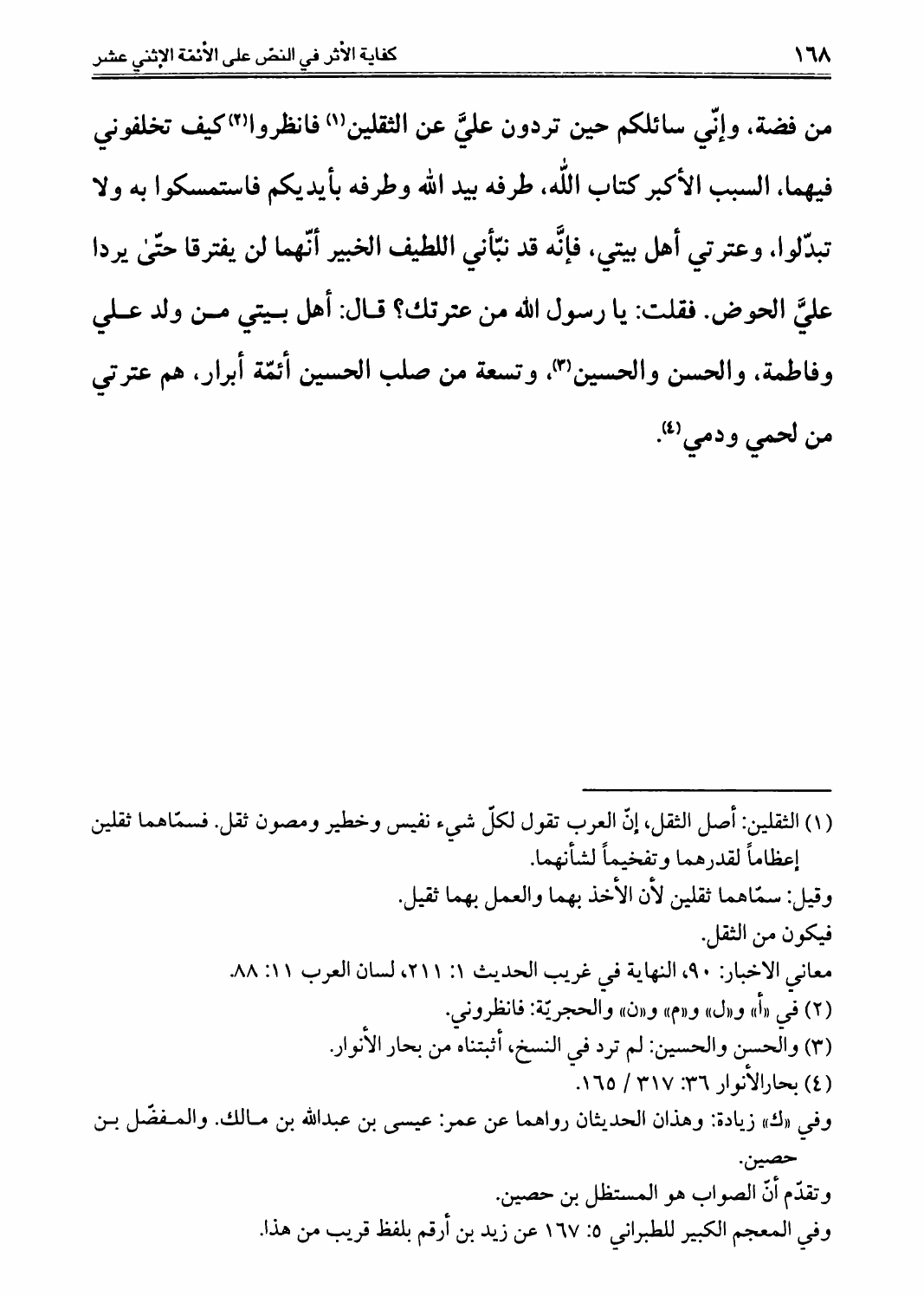 كفاية الأثر، في النصوص على الأئمة الإثني عشر