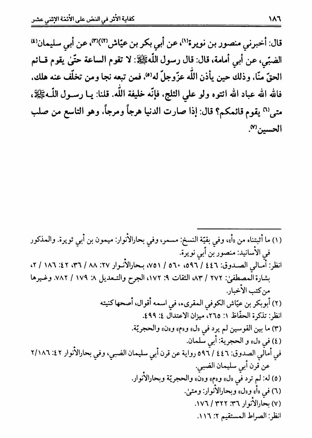 كفاية الأثر، في النصوص على الأئمة الإثني عشر